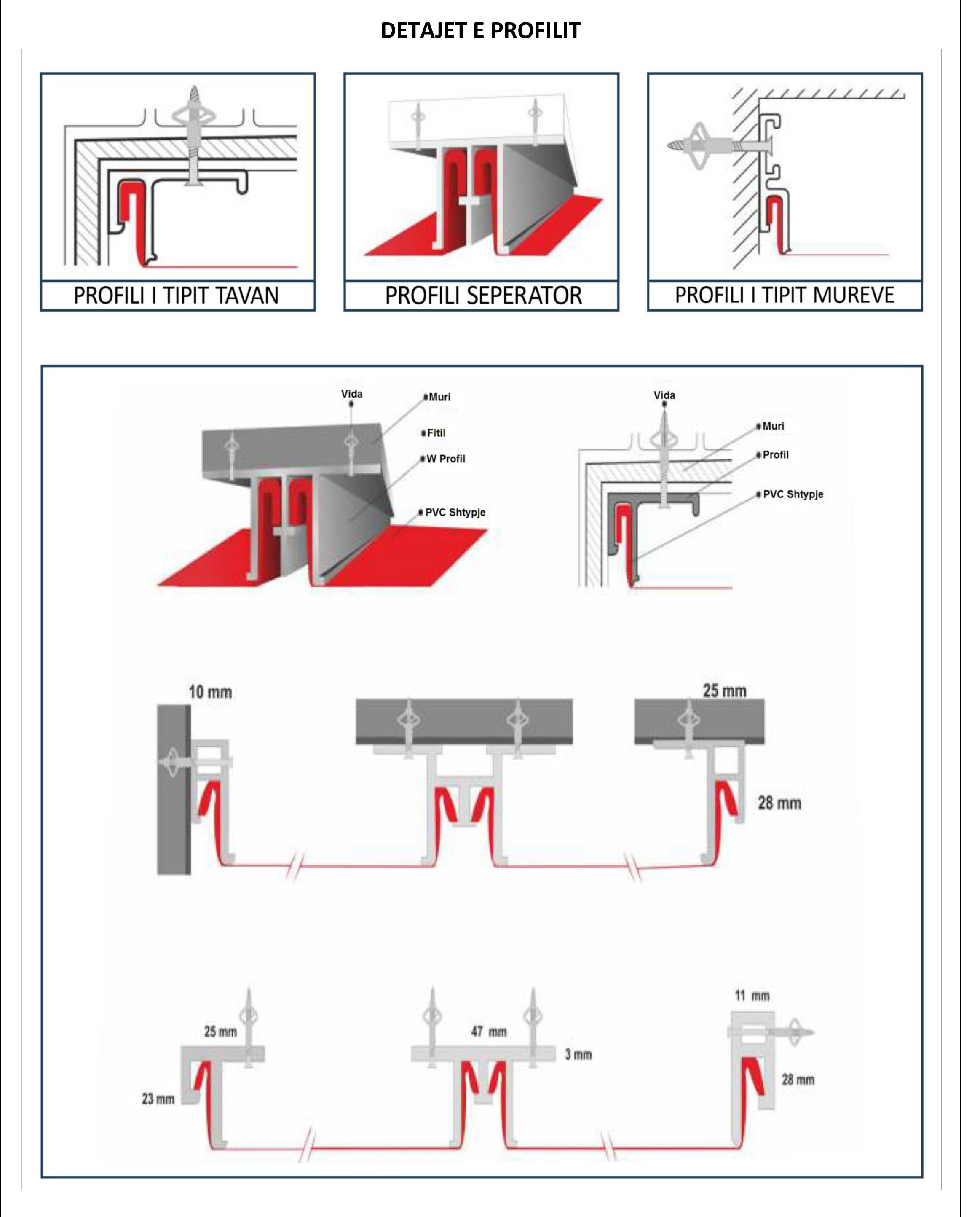 Për montimin e stretch materialit (Barrisol’it) duhet 15cm mbrendësia apo thellësia për shkak të shtrirjeve te lledave .